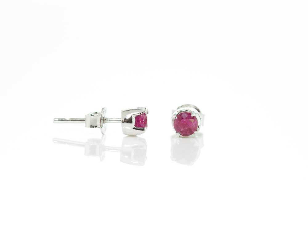 Beautifully deep red - these ear studs have each a 4mm round faceted Ruby in the exquiste AAA quality.